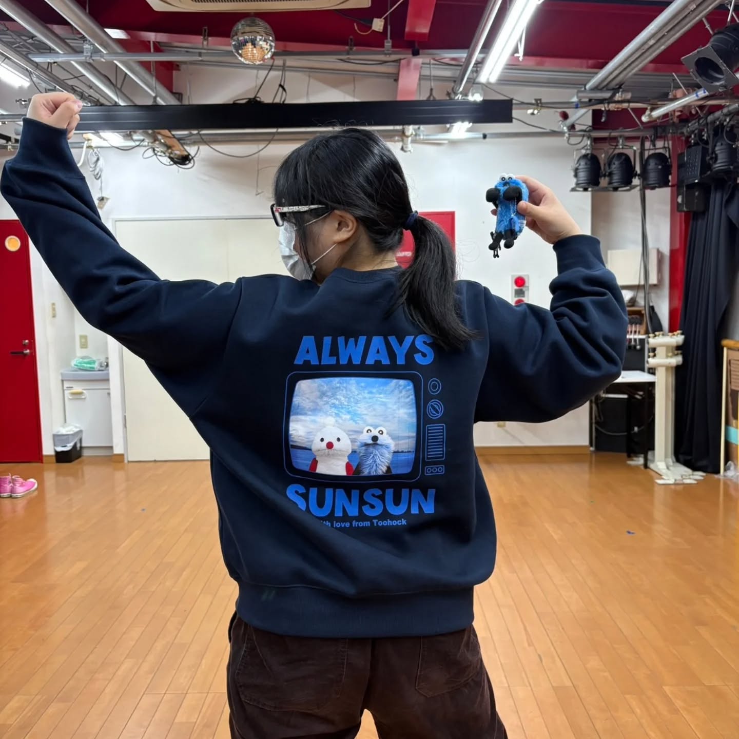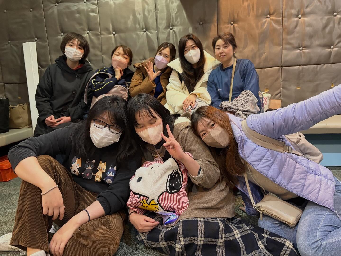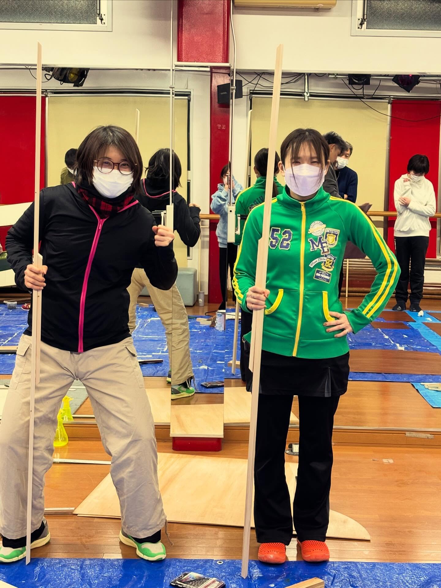 - #改めてご来場、応援いただきありがとうございました?✨ 公演後からびゅんびゅんと師走を駆け抜けております咲田夏美です? 夏目ちゃんがたくさん写真を撮ってくれたのでわたしもオフショットを…! 白カップチームの園ちゃん(そがちゃん)と小百合ちゃん(三橋加奈子さん)に挟まれてしあわせの図☕️? ところで。着ているジャージ、懐かしの『あたっきゅ』でさっとんの衣装だったものなのですが… 喫茶オーシャンリバーの壁の配色とそっくりですね…!??